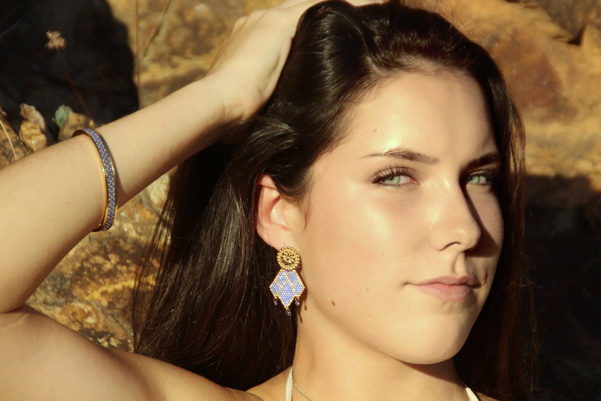 ”Je suis fière de vous présenter mes créations, des bijoux en perles Miyuki tissées à la main dans mon atelier, ici, dans le Sud. J’imagine chaque modèle en m’inspirant des couleurs, de la faune et des sommets des Alpes. Chaque pièce est réalisée avec soin, énergie et passion, pour apporter une touche de couleur et d’élégance à vos tenues.”